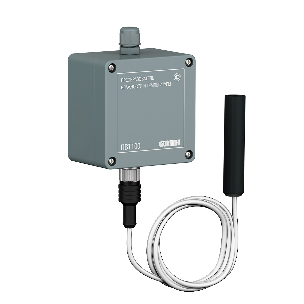 Промышленный датчик влажности и температуры ОВЕН ПВТ100 предназначен для непрерывного преобразования относительной влажности и температуры неагрессивного газа в два унифицированных выходных сигнала: аналоговый 4…20 мА и цифровой Modbus RTU по интерфейсу RS-485.