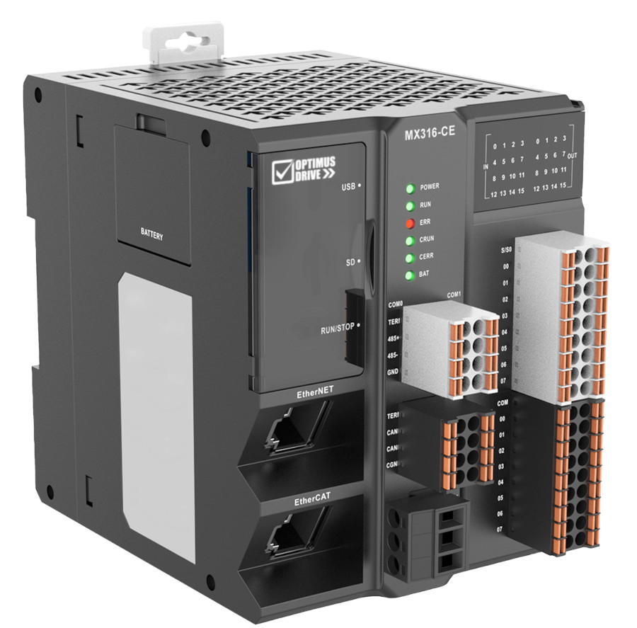 Процессорный модуль MX316, 16 осей EtherCAT, 16DI/16DO (6 двухфазных счетчиков / 6 каналов имп. выходов 200 кГц), EtherNet, EtherCAT, CANopen, USB Type-C, RS232, 2xRS485, MicroSD, питание 24 В=