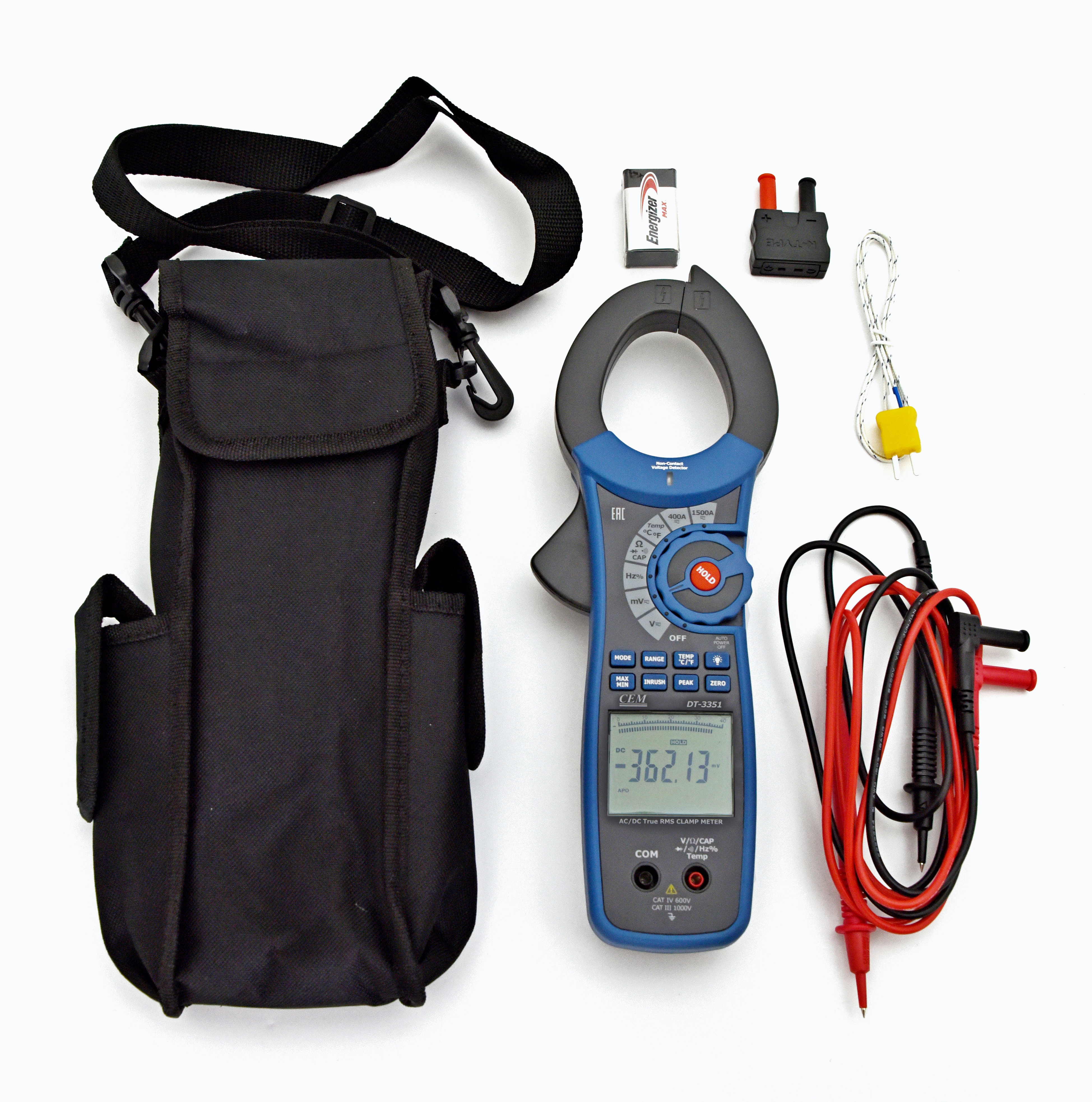DT-3351 — серия профессиональных токовых клещей для измерения постоянного и переменного тока. Клещи измеряют истинное среднеквадратичное значение (True RMS) переменного тока и напряжения. Клещи обладают различными дополнительными функциями, такими как измерение сопротивления, емкости, диодный тест и т.п. Также с помощью этих токовых клещей можно измерять пусковой ток двигателей, приборов освещения и т.д.