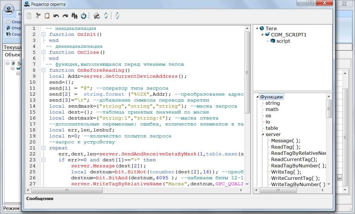 - OPC HDA – архивные данные, включая ведение архивов опрашиваемых оперативных данных. Хранение архивов реализовано с помощью встроенного SQL-сервера