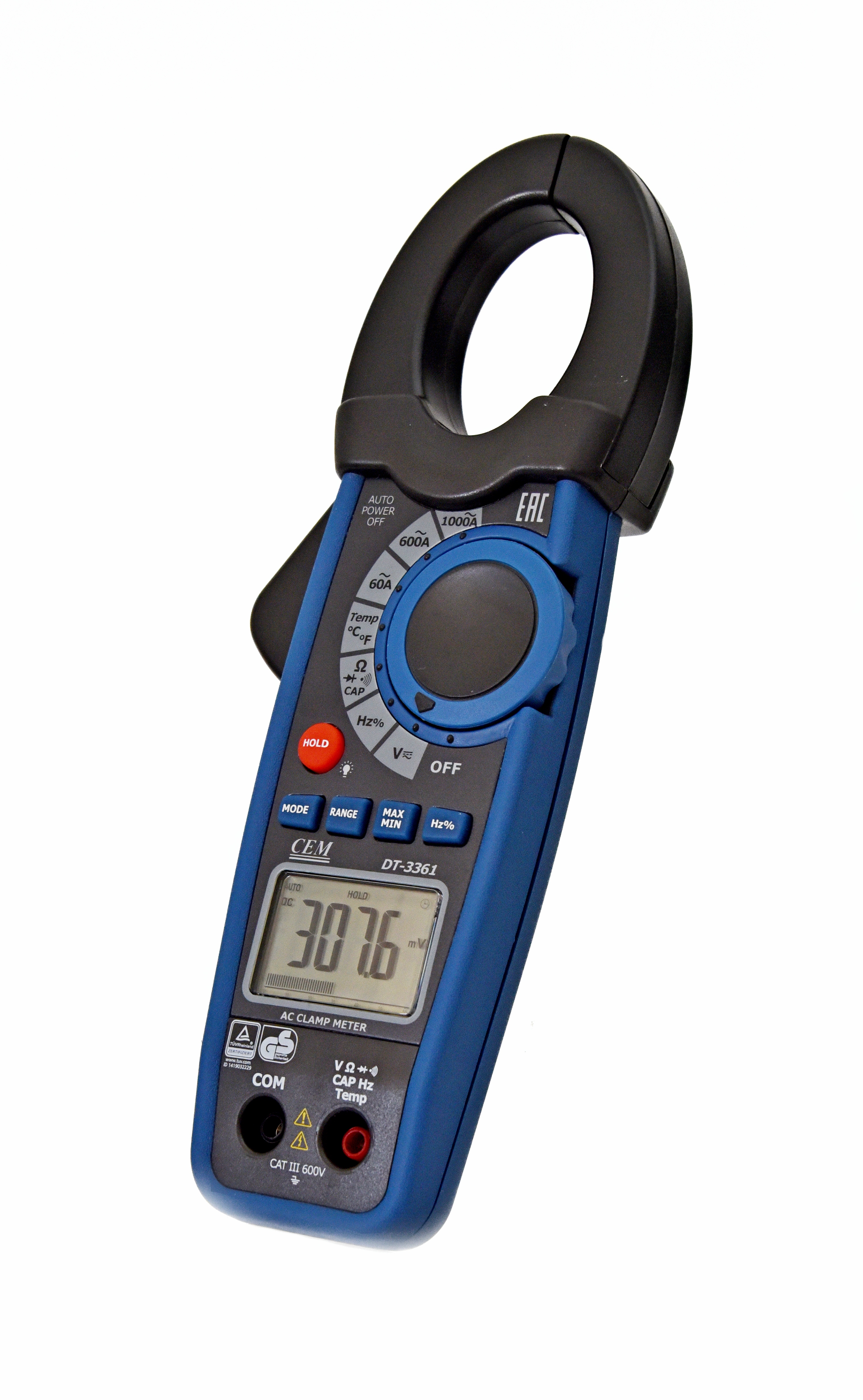 Профессиональные клещи серии 3361 измеряют переменный ток до 1000 А, напряжение, сопротивление, емкость, температуру, частоту. Высококонтрастный жидкокристаллический дисплей с подсветкой, цифровой и аналоговой шкалой.